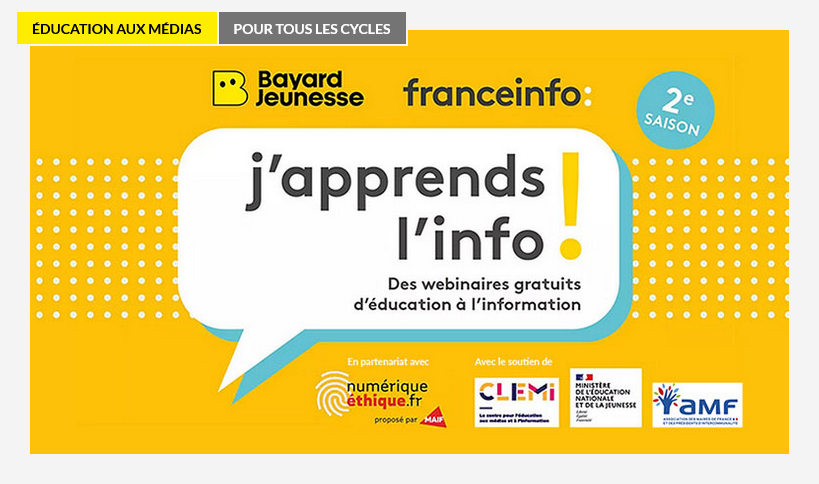 Webinaires "J’apprends l’info" Franceinfo et Bayard Education : du cycle 2 au cycle 4