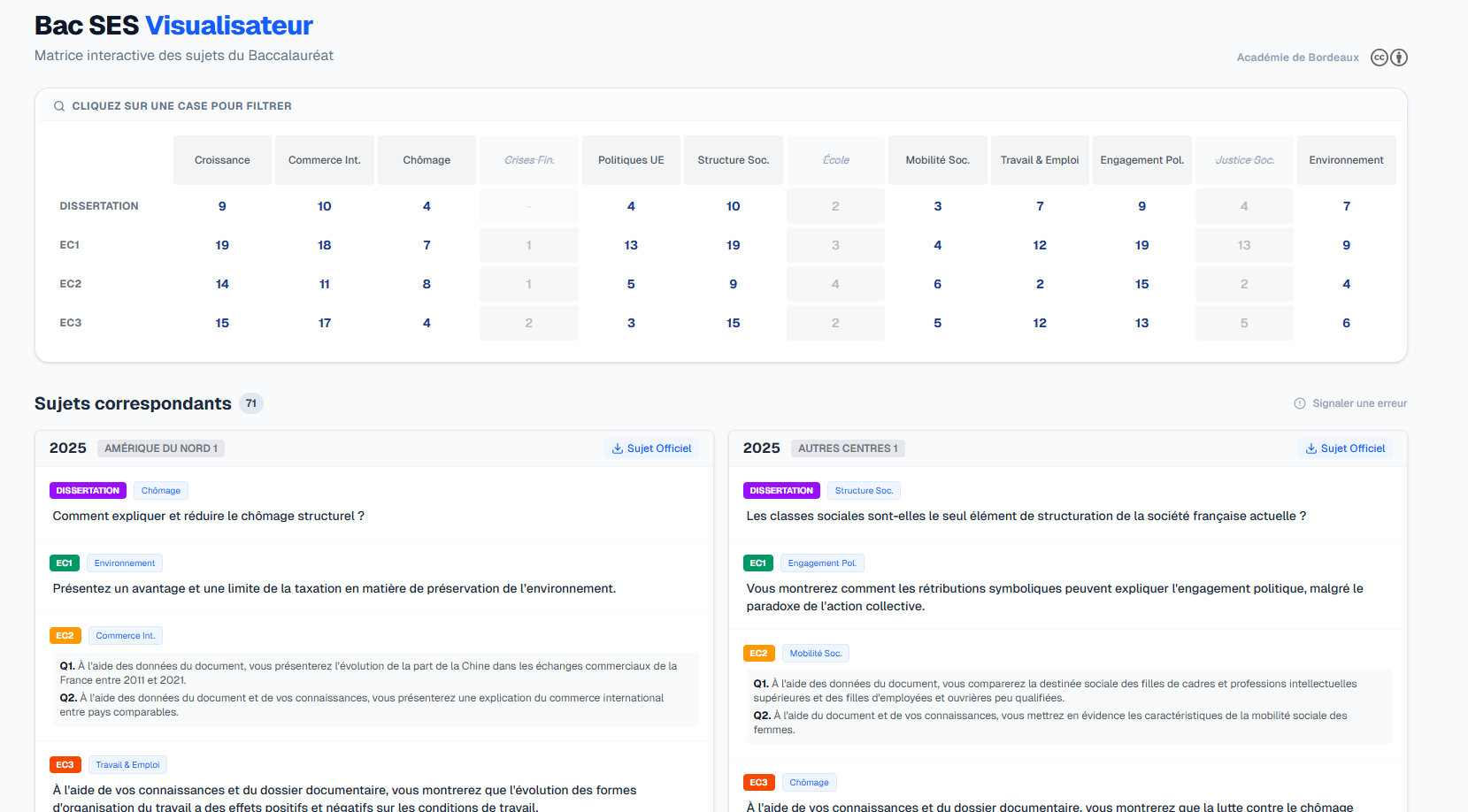 Une matrice interactive permettant de retrouver en un clic tous les sujets tombés au Bac. (…)