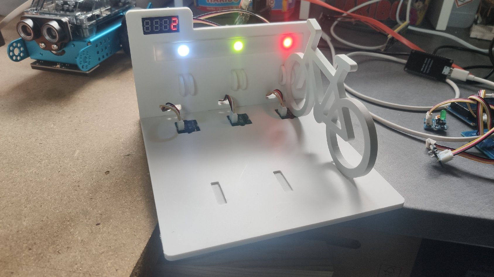 Voyants lumineux de type NEOPIXEL pour signaler une place libre (verte), une place occupée(rouge).
